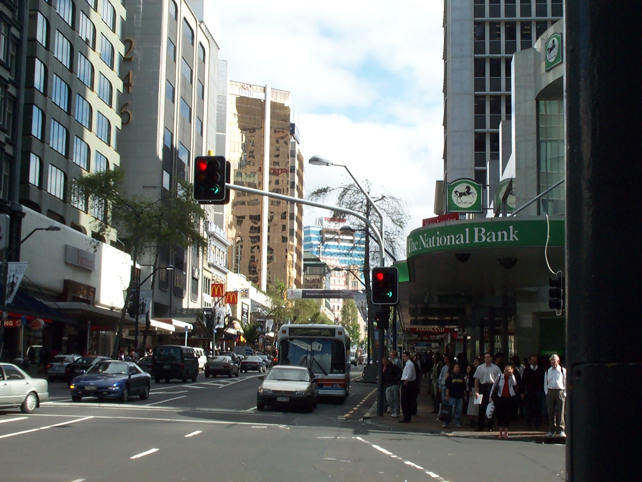 Urban streetscene downtown. Note the protected right-turn signals.